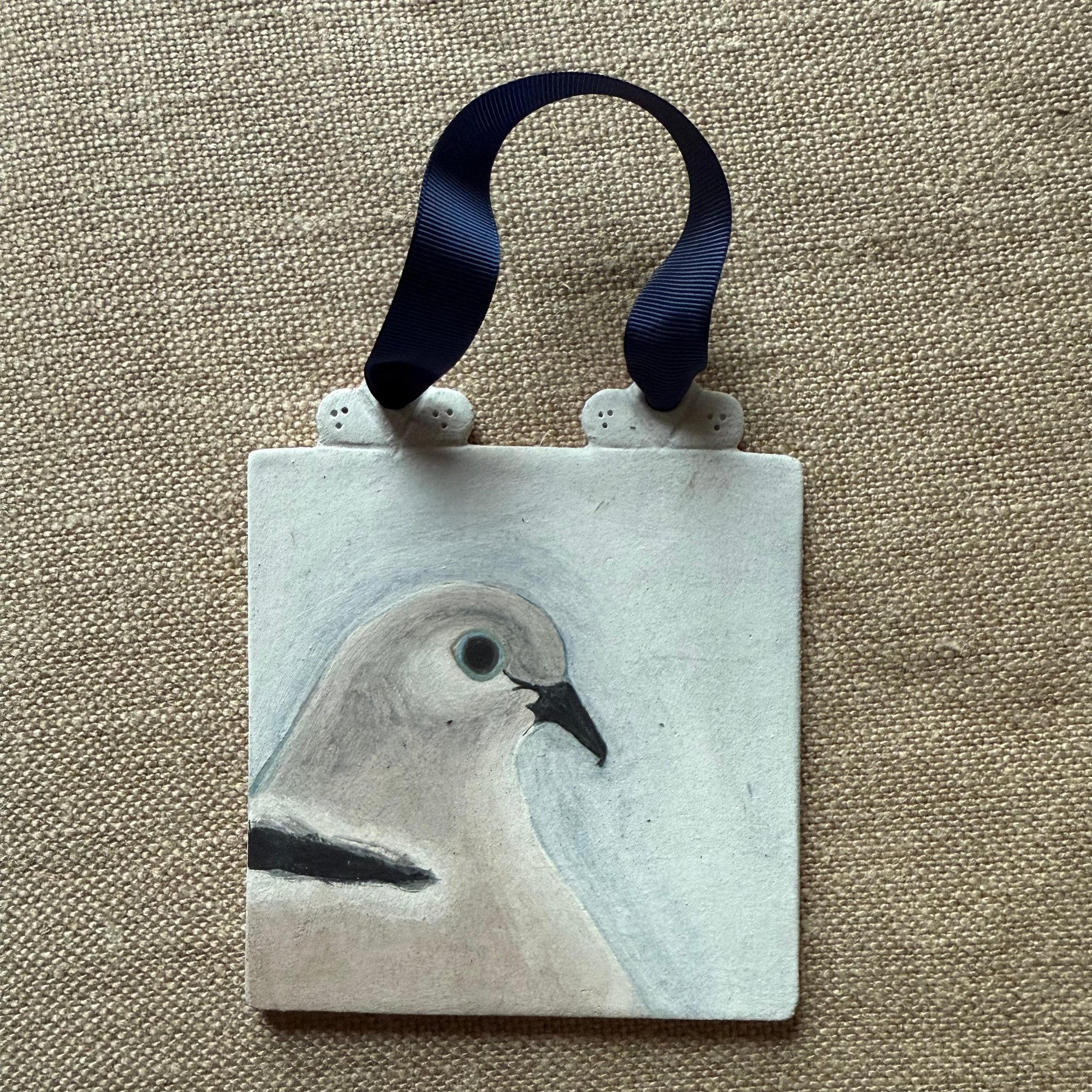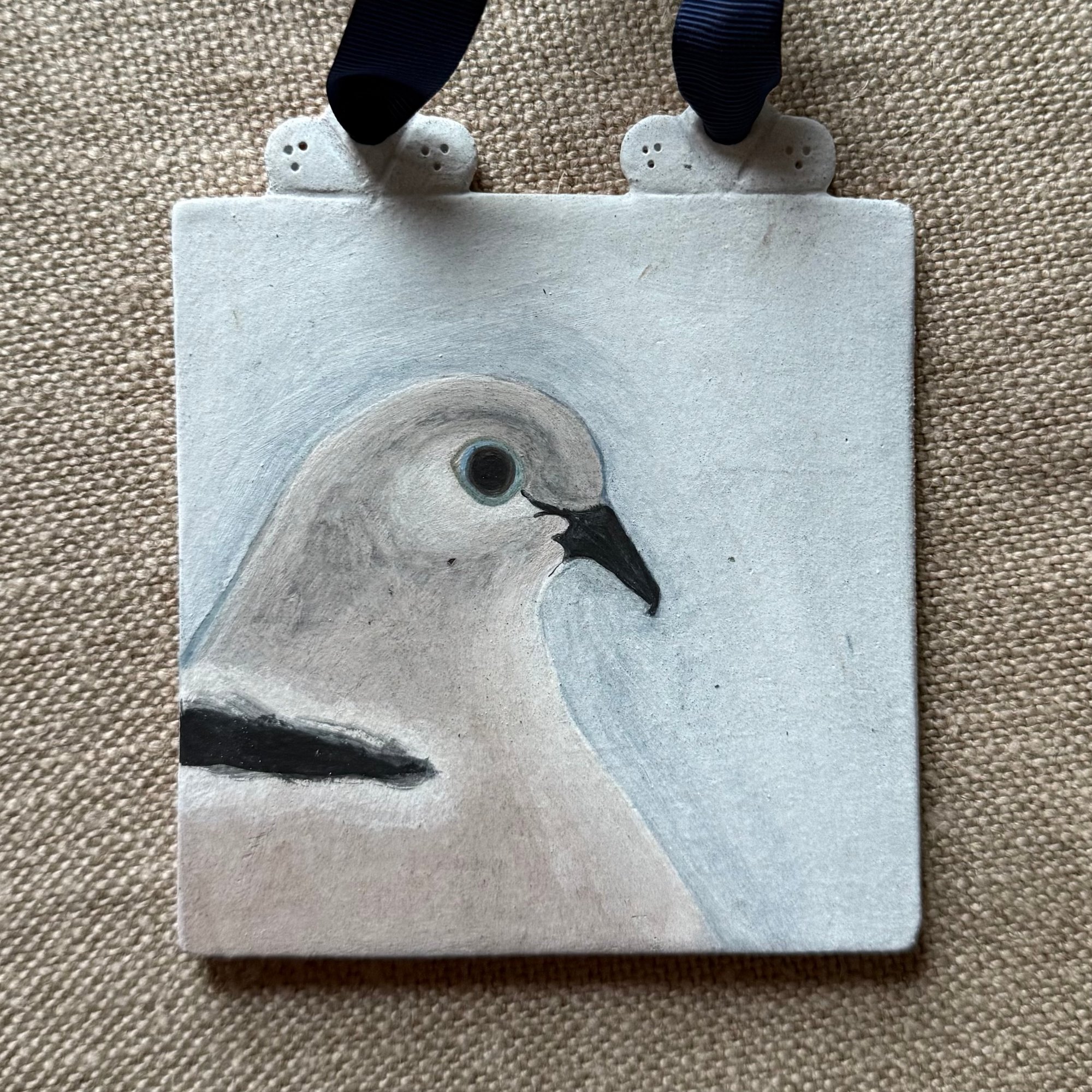 Handmade Plaque made from terracotta clay and hand painted using underglaze and finished with a ribbon