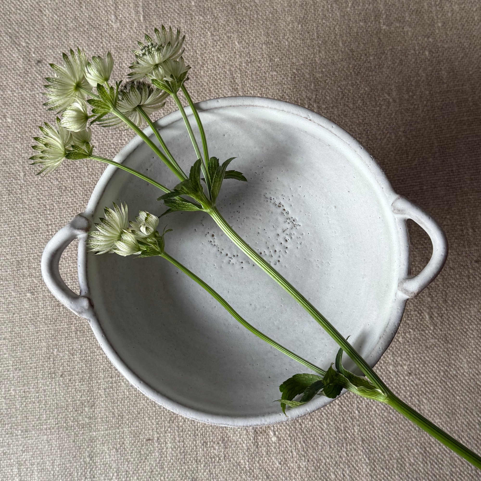 Made from buff stoneware clay and finished in a matt white glaze