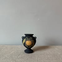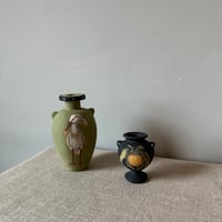 Small Illustrated Stamnos made using coiling and pinching methods from terracotta clay and underglaze to illustrate. Glazed on the inside with a glossy transparent glaze